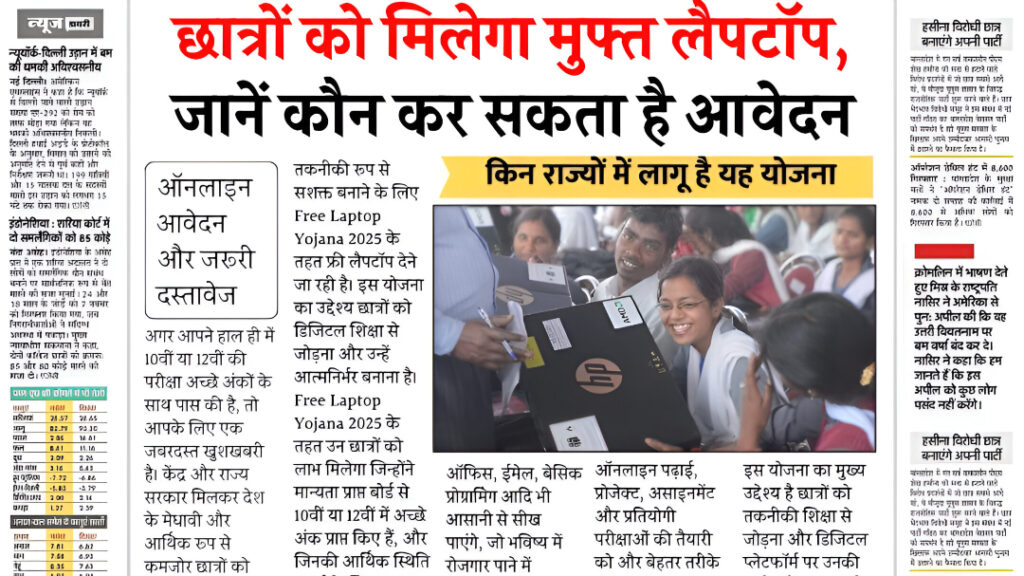 get free laptops: सरकार ने शिक्षा में तकनीकी समावेश को बढ़ावा देने के लिए एक नई पहल शुरू की है इस योजना का उद्देश्य 10वीं तथा 12वीं की कक्षा पास कर चुके मेधावी लेकिन आर्थिक रूप से कमजोर छात्रों को मुफ्त लैपटॉप प्रदान करना है, ताकि वे डिजिटल शिक्षा में पीछे न रहें और ऑनलाइन … Continue reading 10वीं और 12वीं में पास सभी विद्यार्थियों को मिलेगा फ्री लैपटॉप योजना