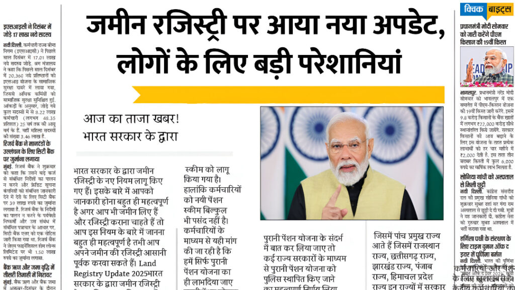 Land Registry New Rule 2025: जमीन की रजिस्ट्री को लेकर आप सभी जानते होंगे कि आखिर आपने कहीं पर भी जमीन खरीदी है या पुराने समय से आपके पास किसी भी प्रकार की कितने भी बीघा की जमीन है और अगर आपने उसकी रजिस्ट्री नहीं करवा रखी है तो आपके लिए यह बुरी खबर है … Continue reading Land Registry New Rule 2025: जमीन की रजिस्ट्री के लिए अब जरूरी होंगे 5 दस्तावेज, बिना इनके नहीं होगा रजिस्ट्रेशन