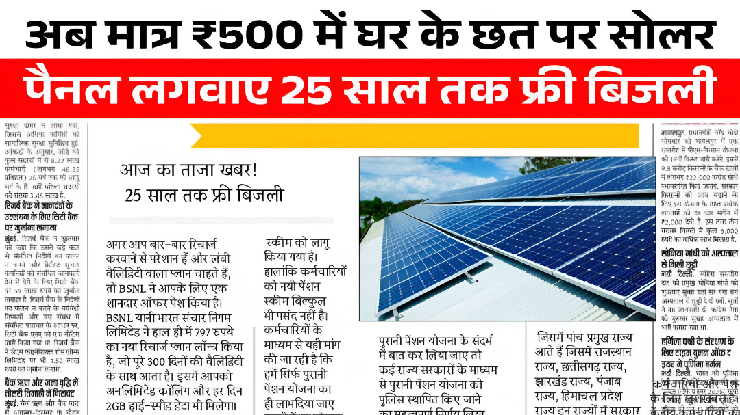 Solar Panel Yojana 2025: आज के समय में बिजली की बढ़ोतरी लगता और पर्यावरण प्रदूषण दोनों ही परिवारों के लिए एक बड़ी चिंता का विषय बने हुए हैं एशिया में यदि हर घर की छत पर सोलर पैनल लगाकर मुफ्त बिजली का लाभ मिलने तो या किसी तोहफों से काम नहीं है। बिहार के लखीसराय जिले के कजरा में देश का सबसे बड़ा बैटरी आधारित सोलर बिजली घर समय से पहले बनकर तैयार हो गया है। यह परियोजना 2026 तक पूरी करने का लक्ष्य रखा गया था लेकिन अब यह सितंबर में ही चालू हो जाएगी। मुख्यमंत्री नीतीश कुमार इसी महीने इसका उद्घाटन करेंगे। यह बिहार की पहली और देश की सबसे बड़ी सौर ऊर्जा के साथ बैटरी ऊर्जा भंडारण प्रणाली आधारित परियोजना है जो 1232 एकड़ जमीन पर दो फेज में विकसित की गई है।