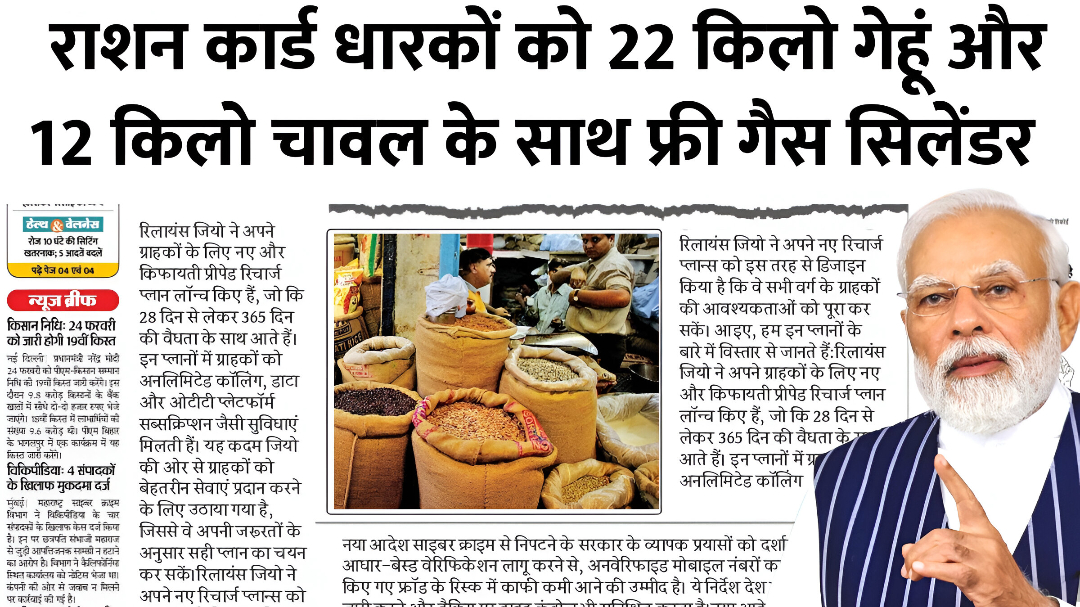 अब राशन कार्ड धारकों को 22 किलो गेहूं और 12 किलो चावल के साथ फ्री गैस सिलेंडर Ration Card News